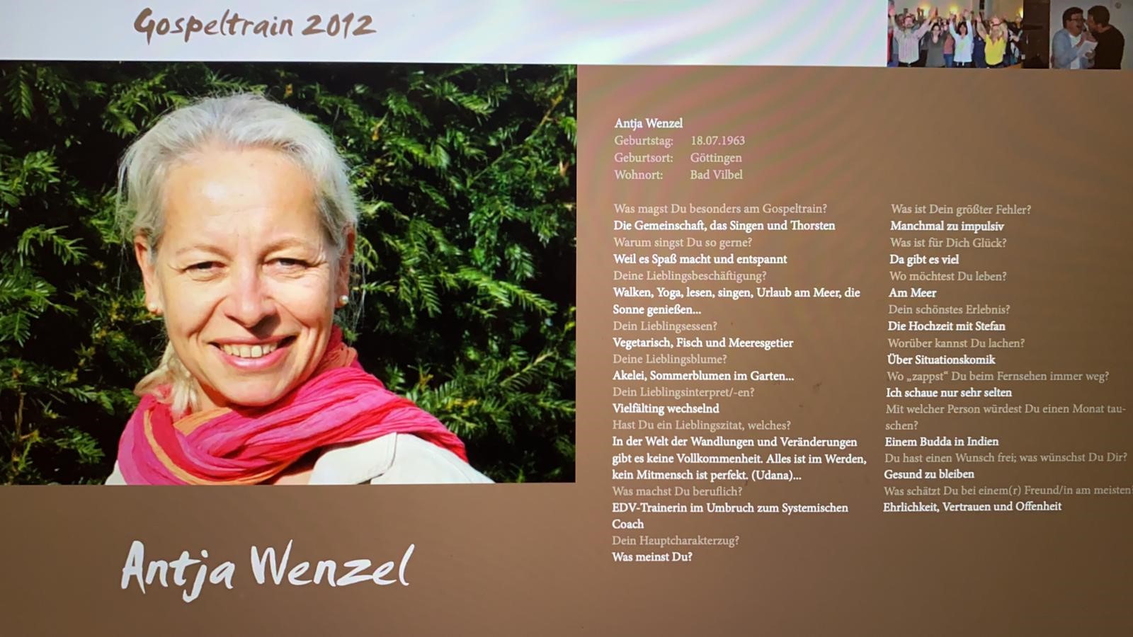 Liebe Antja, Dein Leben war so bunt wie Dein Kleidungsstil – Du hast Farbe ins Dasein von allen Menschen gebracht, die mit Dir zusammen sein durften. Du liebtest die Musik und hast auch den Gospeltrain mit Deinem offenen Herzen und Deinem Temperament bereichert.